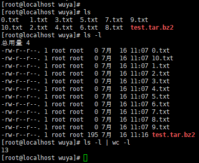 示例:查看当前目录有多少文件:ls -l | wc -l